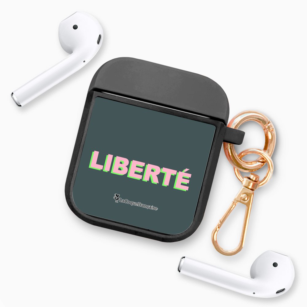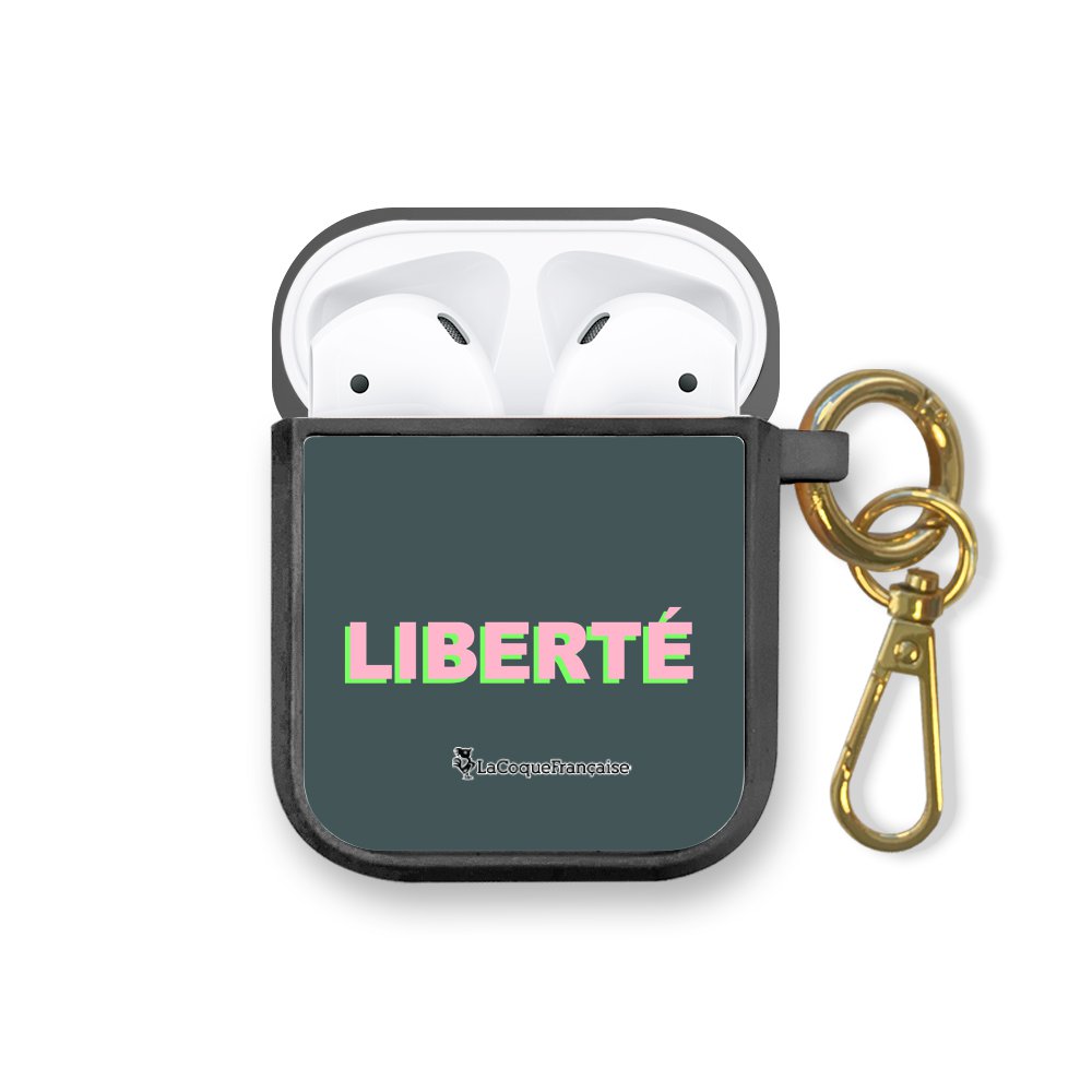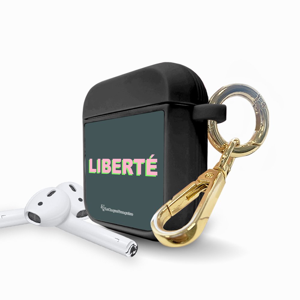 • > High Tech>Audio>Accessoires Airpod>Housse pour airpods silicone liquide noir Liberté rose et vert Motif Ecriture Tendance La Coque Francaise