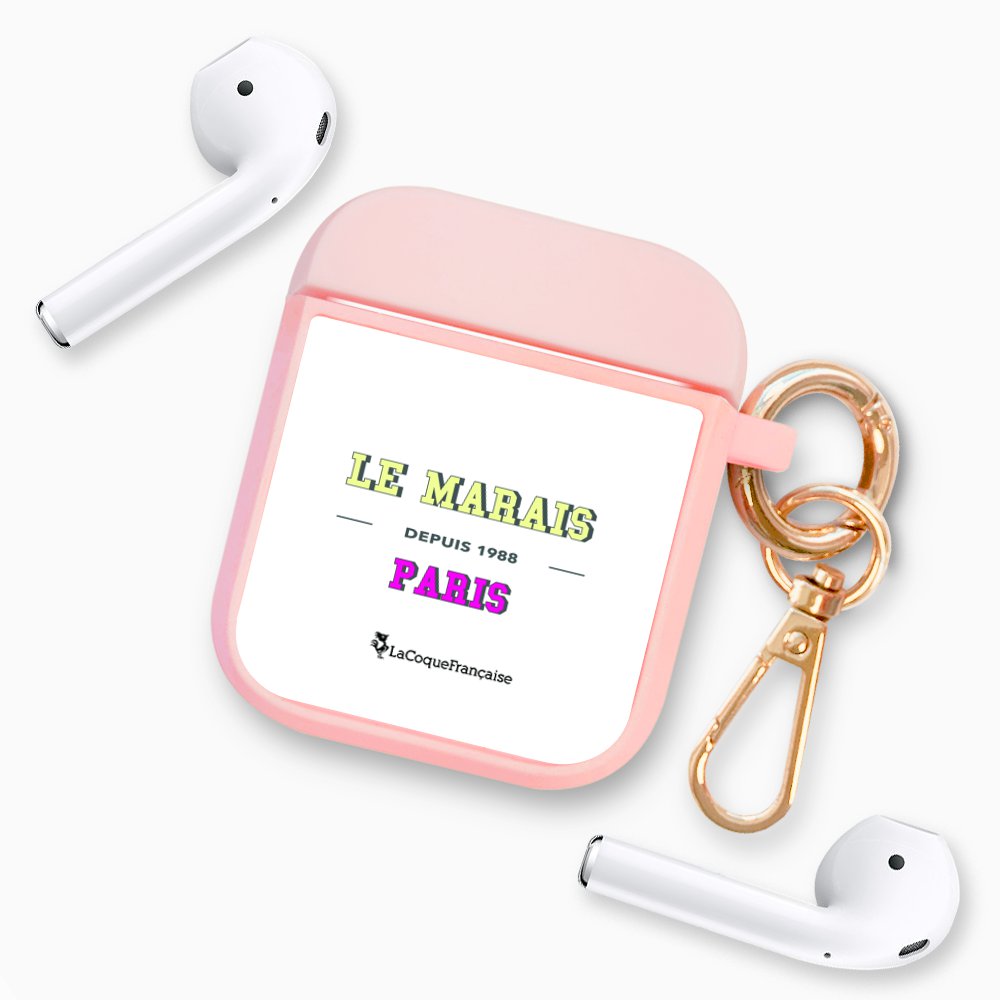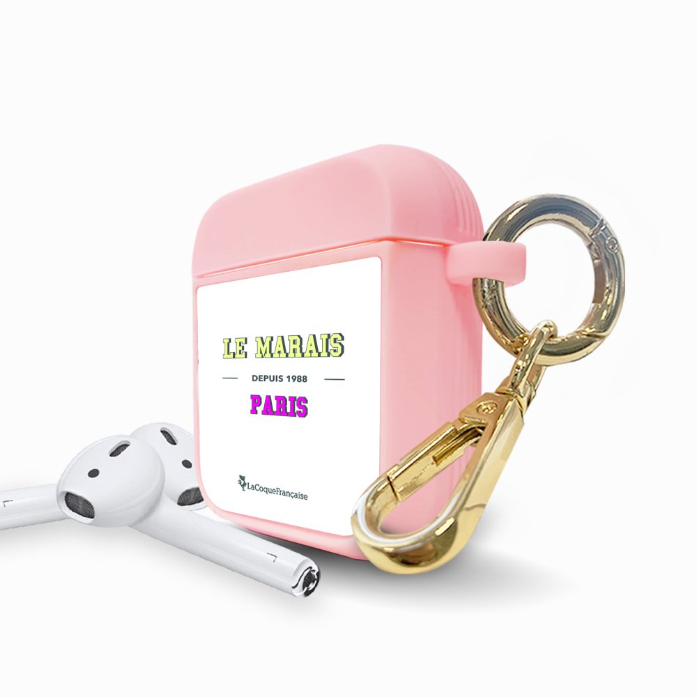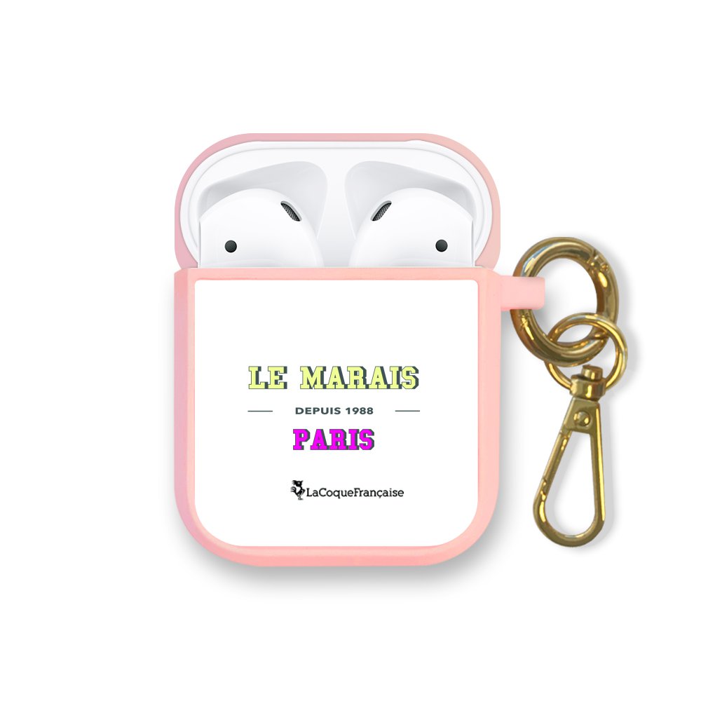 Housse pour Airpods silicone liquide rose Le Marais Motif Ecriture Tendance La Coque Francaise