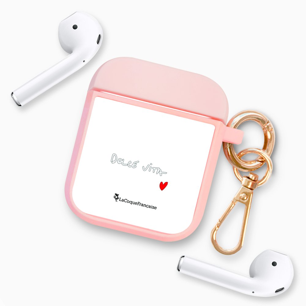 • > High Tech>Audio>Accessoires Airpod>Housse pour Airpods silicone liquide rose Dolce Vita Motif Ecriture Tendance La Coque Francaise