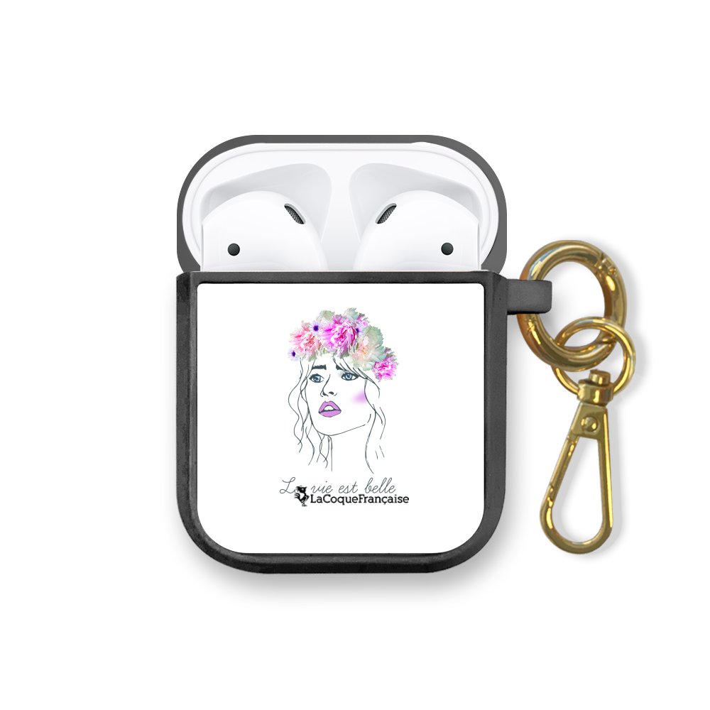Housse pour airpods silicone liquide noir La vie est belle Motif Ecriture Tendance La Coque Francaise