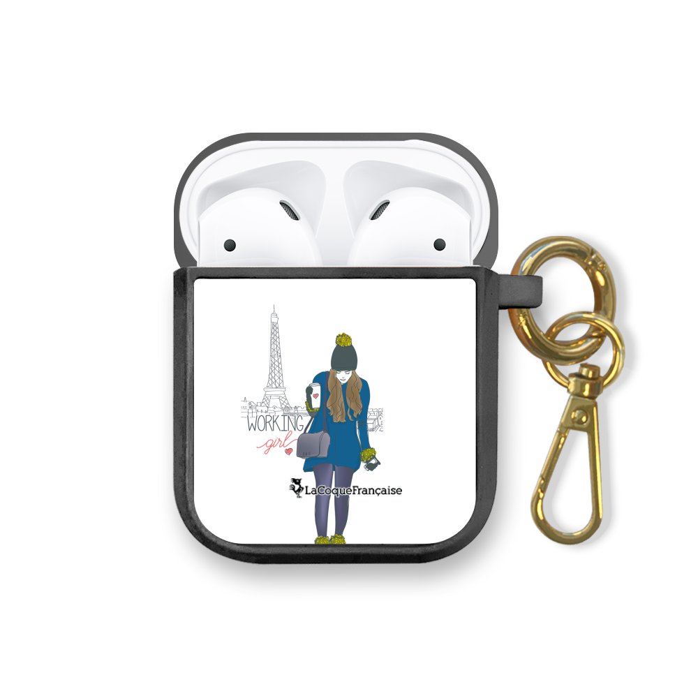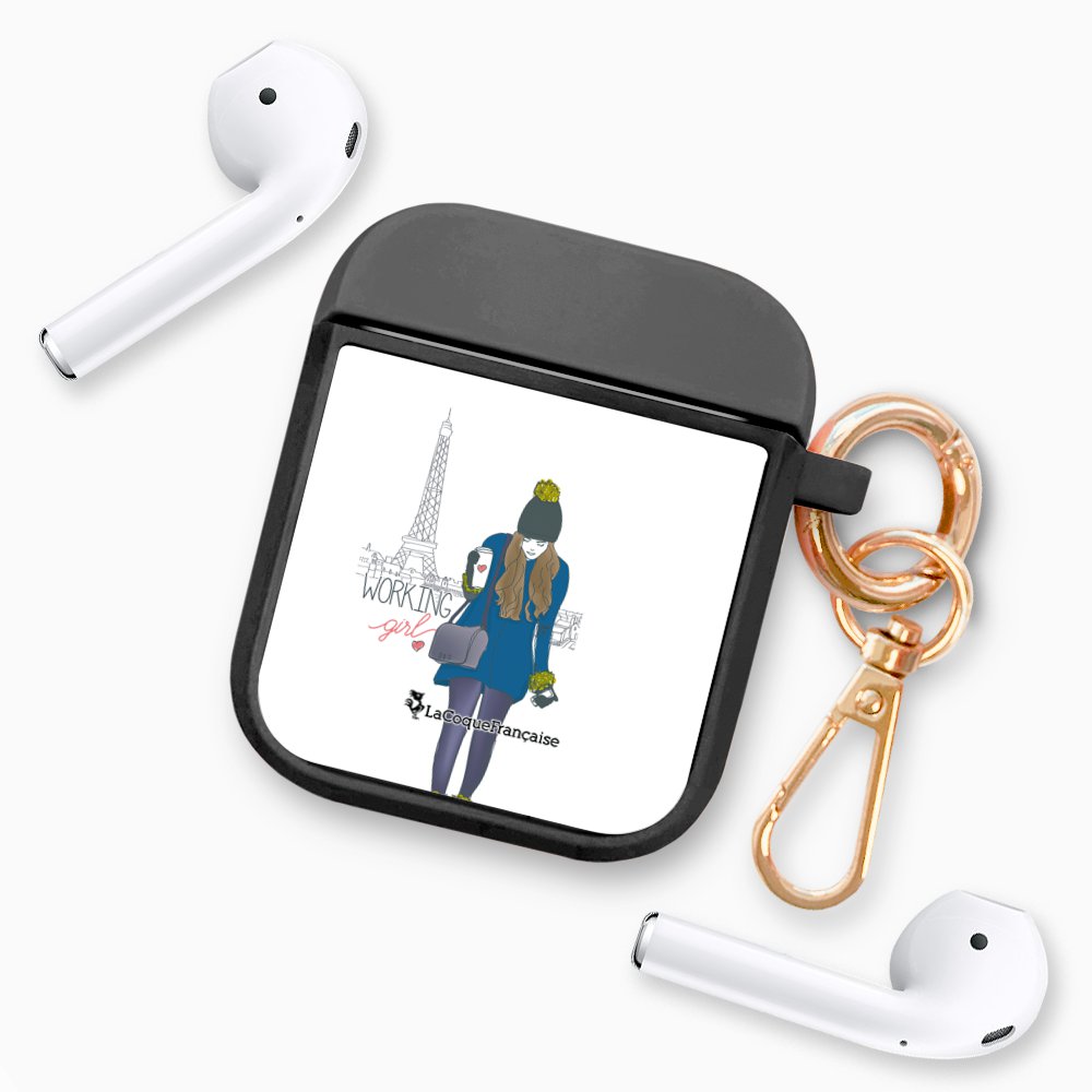 • > High Tech>Audio>Accessoires Airpod>Housse pour airpods silicone liquide noir Working girl Motif Ecriture Tendance La Coque Francaise