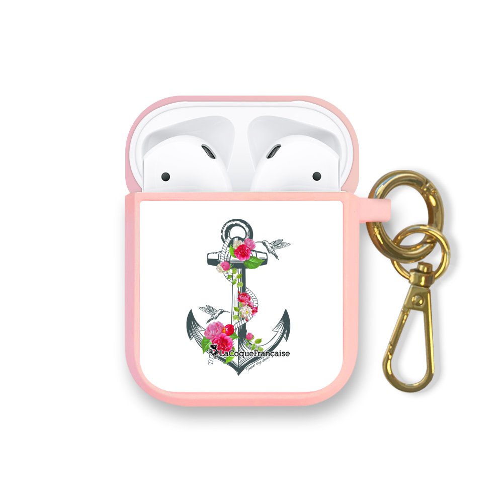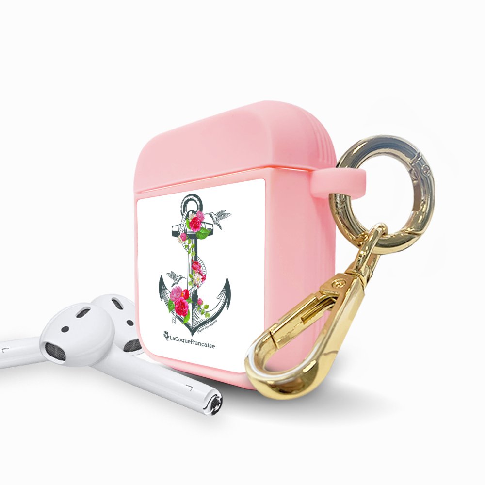 Housse pour Airpods silicone liquide rose Ancre Motif Ecriture Tendance La Coque Francaise