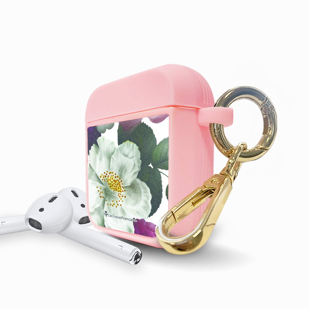 Housse pour Airpods silicone liquide rose Fleurs roses Motif Ecriture Tendance La Coque Francaise