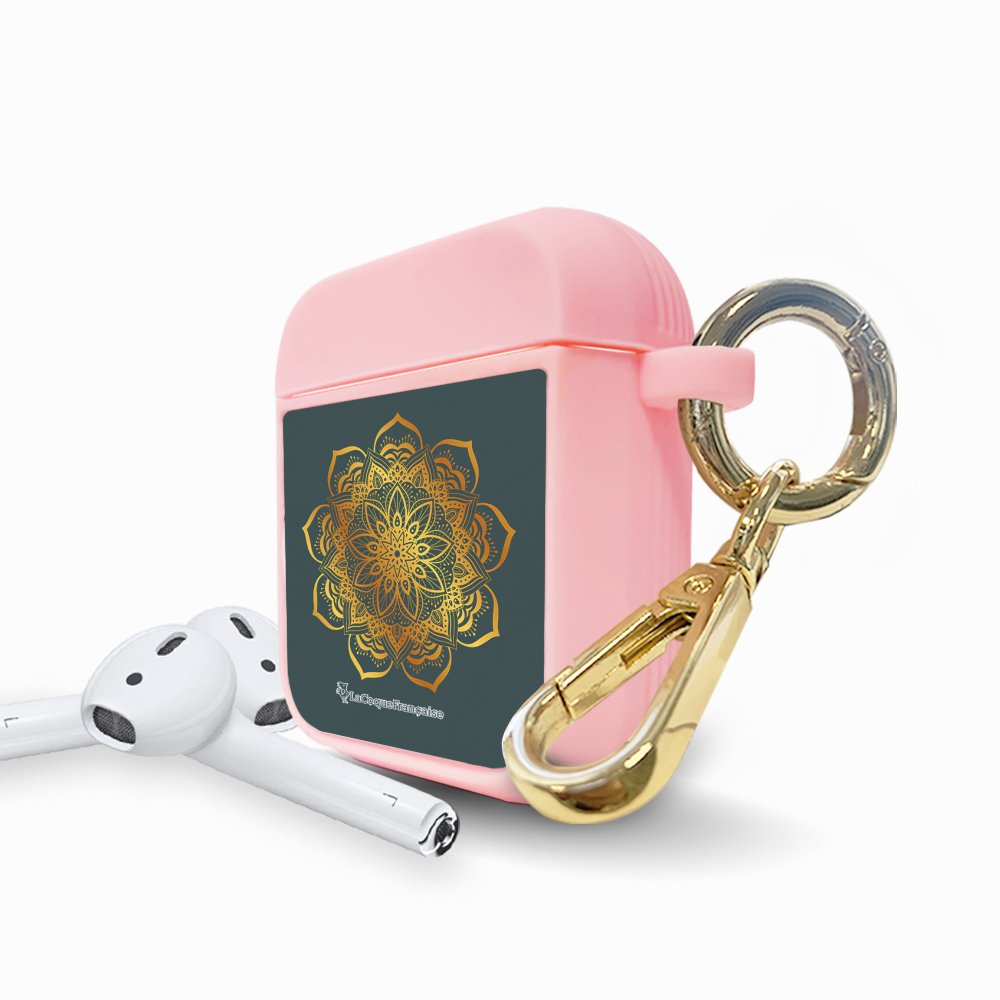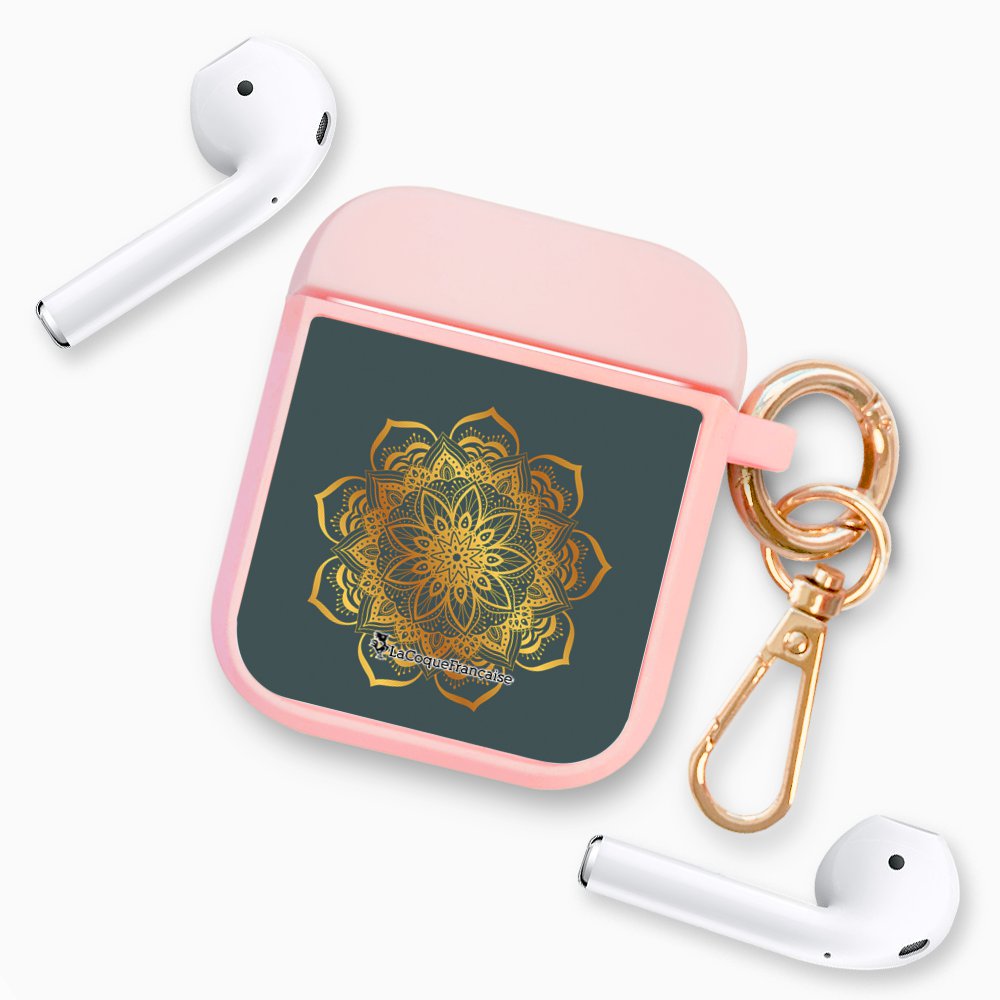 • > High Tech>Audio>Accessoires Airpod>Housse pour Airpods silicone liquide rose Mandala Or Motif Ecriture Tendance La Coque Francaise