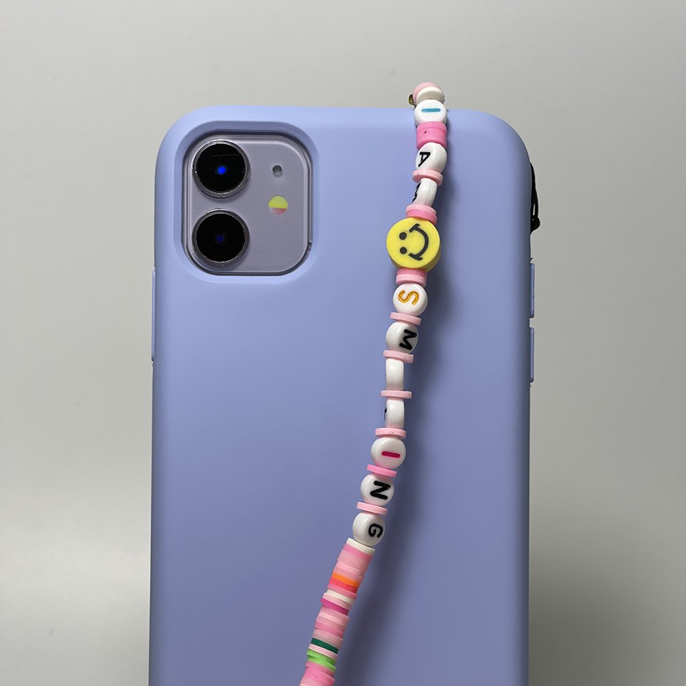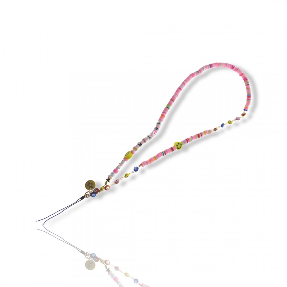 • > High Tech>Gadgets>Bijoux de téléphones>Bijoux de téléphone à accrocher à votre coque I am Smiling perles roses - longueur 61 cm