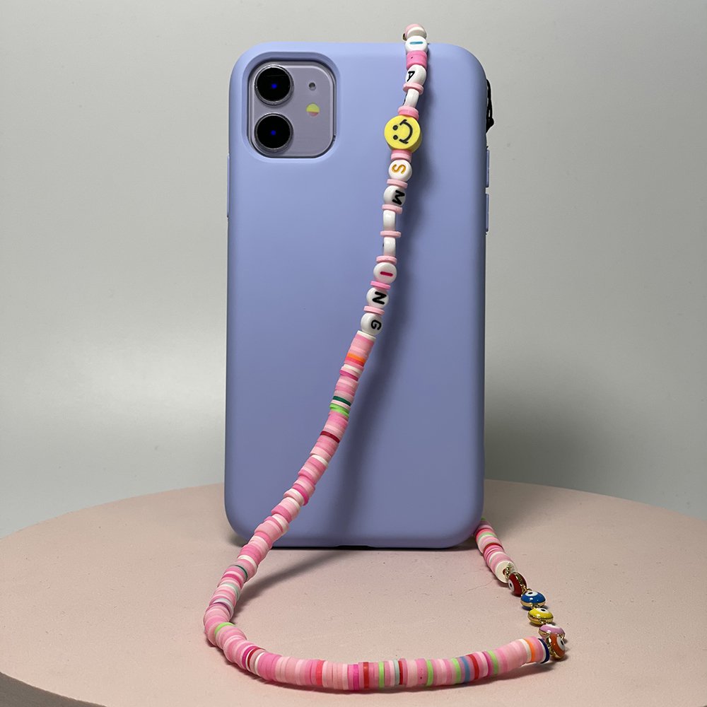 Bijoux de téléphone à accrocher à votre coque I am Smiling perles roses - longueur 61 cm