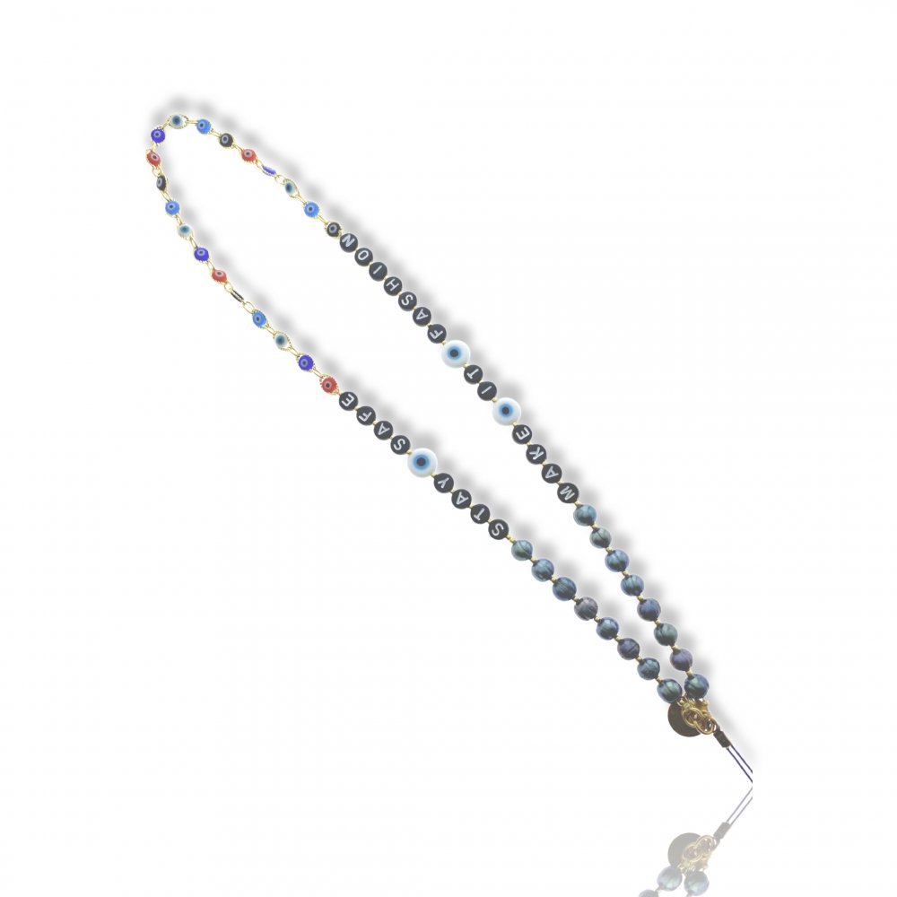 • Bijoux de téléphone Maya 30 cm perles beiges et noires avec mousquetons dorés