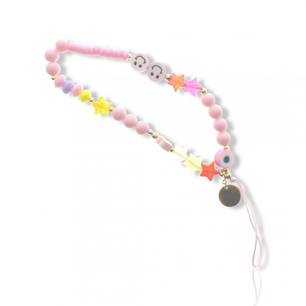 • Bijoux de téléphone LEA à accrocher à votre coque perles roses pales- longueur 35 cm