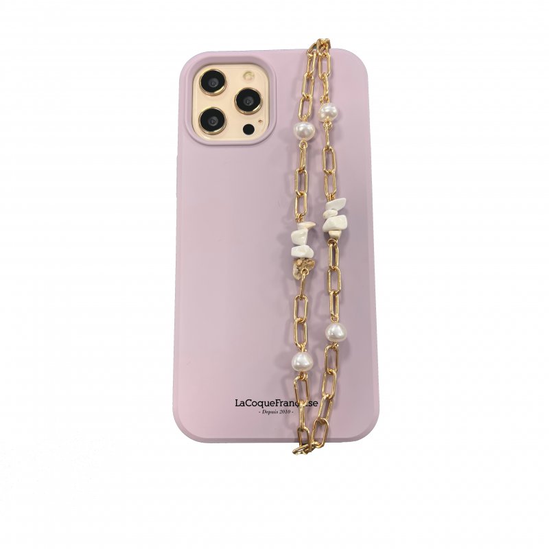 • Bijoux de téléphone Flore 30 cm perles mats rose pâle avec mousquetons dorés