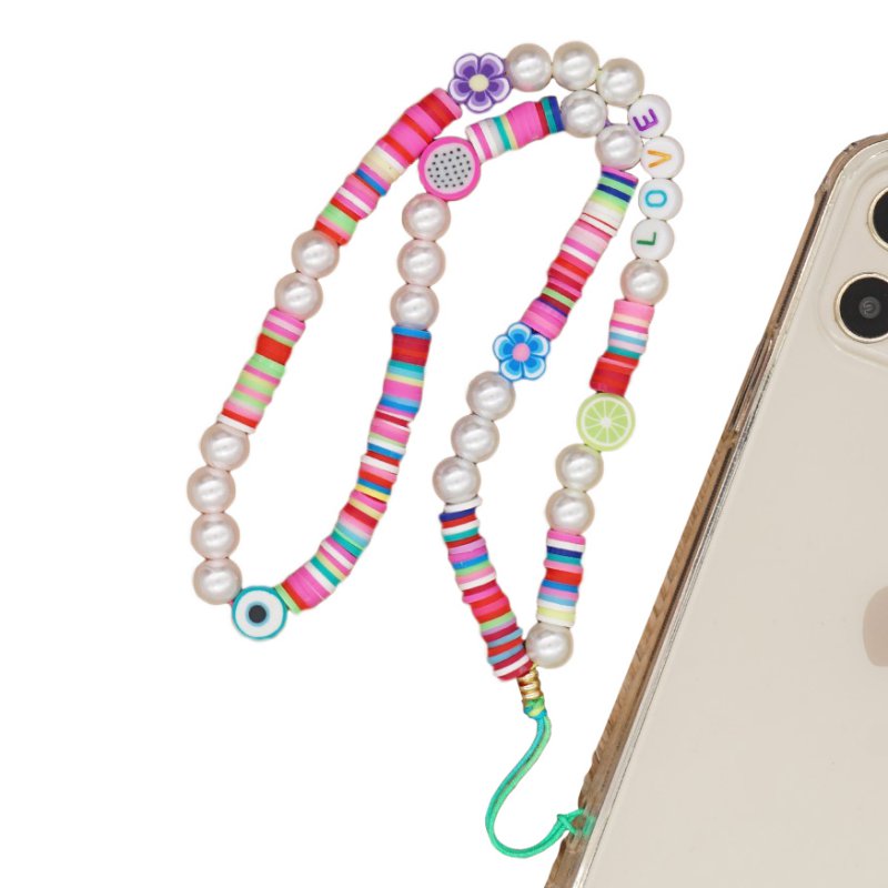 • > High Tech>Gadgets>Bijoux de téléphones>Bijoux de téléphone LUNA à accrocher à votre coque perles blanches et colorées - longueur 80 cm