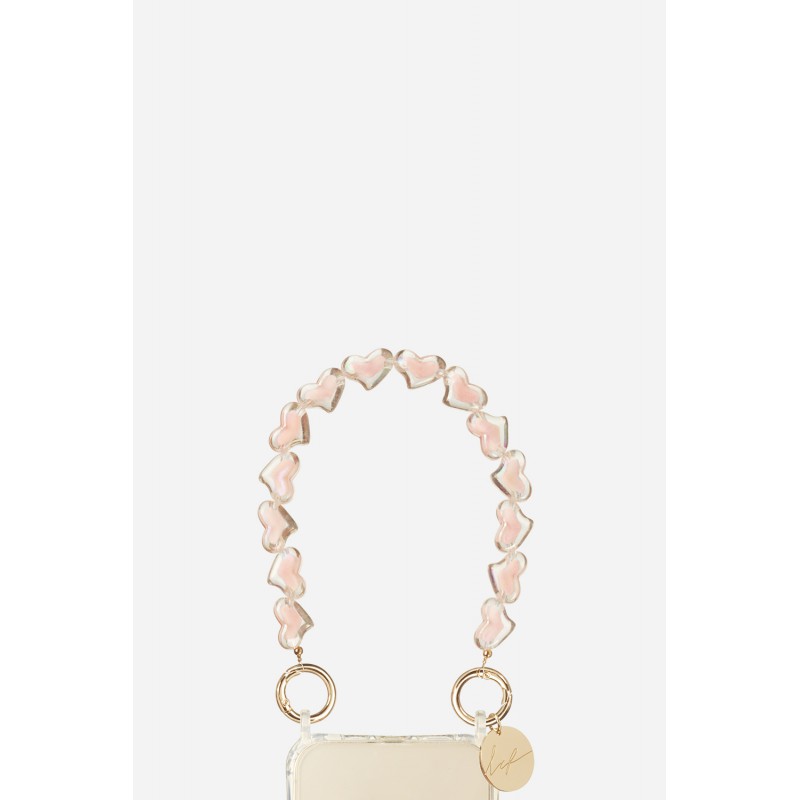 • Bijoux de téléphone Livia 30 cm perles coeurs rose avec mousquetons dorés