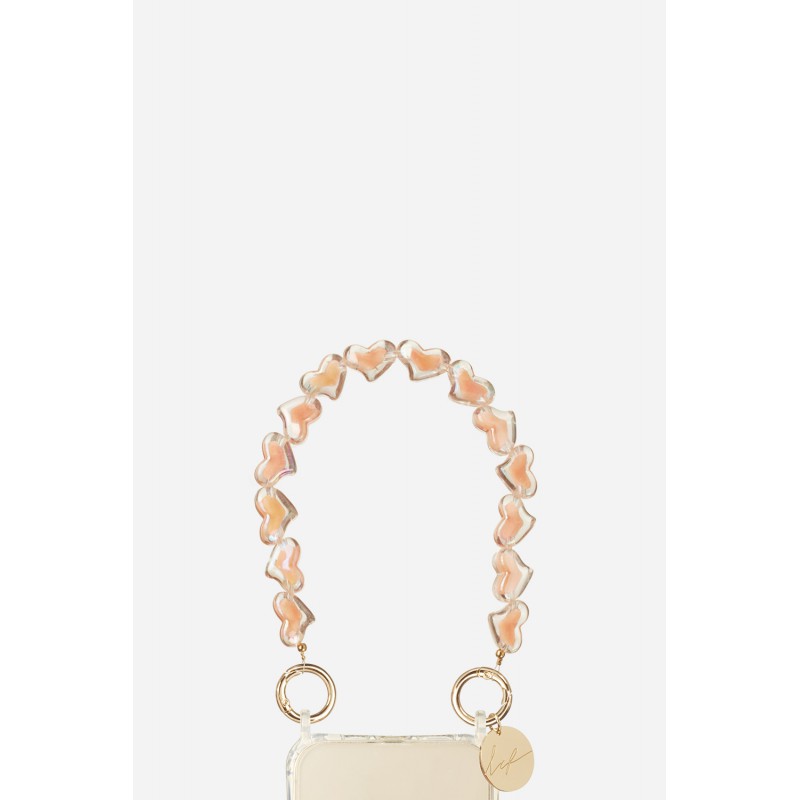 Bijoux de téléphone Livia 30 cm perles coeurs corail avec mousquetons dorés
