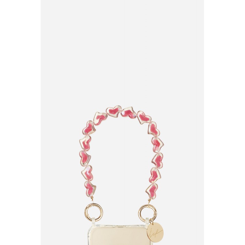 • Bijoux de téléphone Livia 30 cm perles coeurs rose avec mousquetons dorés