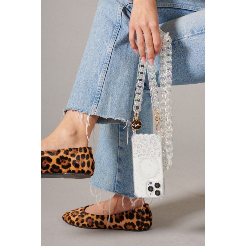 Parfait pour avoir les mains libres tout en faisant autres choses, nos chaînes peuvent être portées en bandoulière ou en collier.