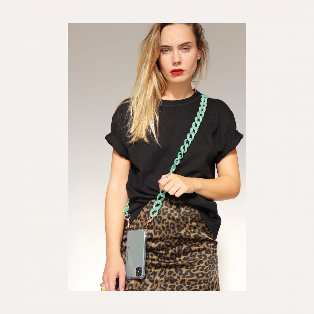 Parfait pour avoir les mains libres tout en faisant autres choses, nos chaînes peuvent être portées en bandoulière ou en collier.