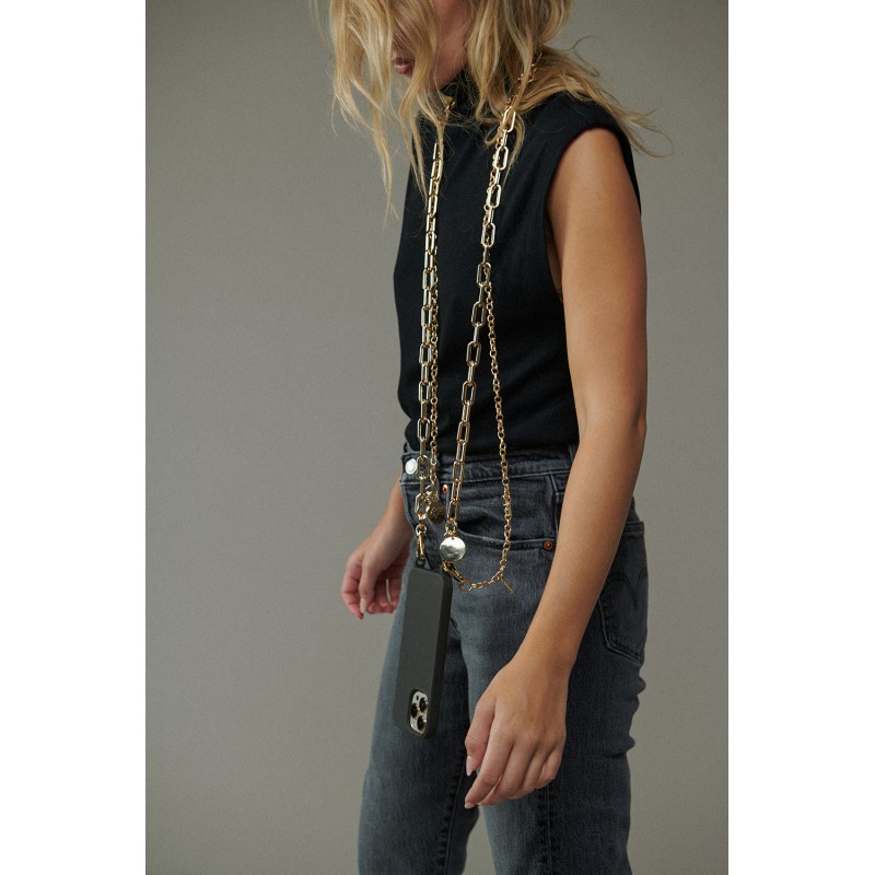 L'accessoire incontournable ! Plus besoin de chercher votre téléphone au fond du sac ou sur votre bureau, il vous suit de partout.Parfait pour avoir les mains libres tout en faisant autres choses, nos chaînes peuvent être portées en bandoulière ou en collier.Nos chaînes bijoux mesurent 120 cm, composées de résine ultra résistante elles donneront une touche chic à vos tenues.Vous pouvez retirer la chaîne en toute simplicité et à tout moment, et l'échanger comme vous le souhaitez au grès de vos tenues et vos envies.Vous avez la possibilité d’adapter votre coque avec les différentes chaines que nous proposons où garder un style plus sobre avec une lanière de votre choix.La chaîne est livrée dans un pochon en coton réutilisable.