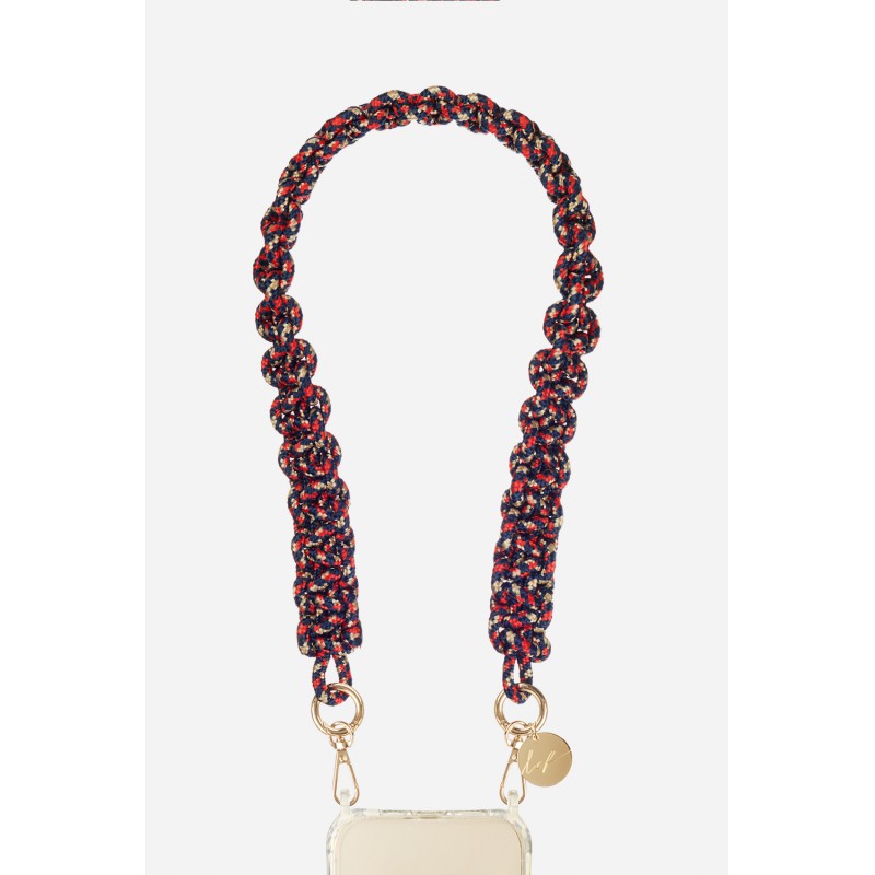• > High Tech>Gadgets>Chaînes>Lanière Sangle Robby 60 cm bleu beige rouge en cordon tressé avec mousquetons dorés