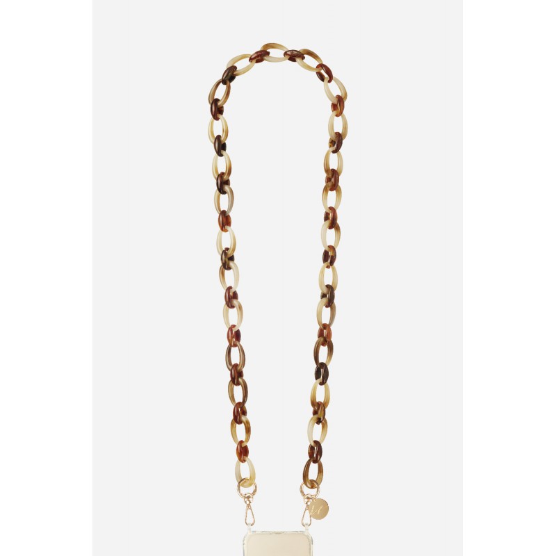L'accessoire incontournable ! Plus besoin de chercher votre téléphone au fond du sac ou sur votre bureau, il vous suit de partout.Parfait pour avoir les mains libres tout en faisant autres choses, nos chaînes peuvent être portées en bandoulière ou en collier.Nos chaînes bijoux mesurent 120 cm, composées de résine ultra résistante elles donneront une touche chic à vos tenues.Vous pouvez retirer la chaîne en toute simplicité et à tout moment, et l'échanger comme vous le souhaitez au grès de vos tenues et vos envies.Vous avez la possibilité d’adapter votre coque avec les différentes chaines que nous proposons où garder un style plus sobre avec une lanière de votre choix.La chaîne est livrée dans un pochon en coton réutilisable.
