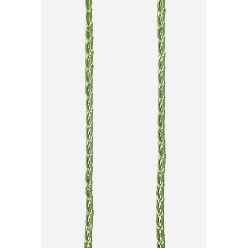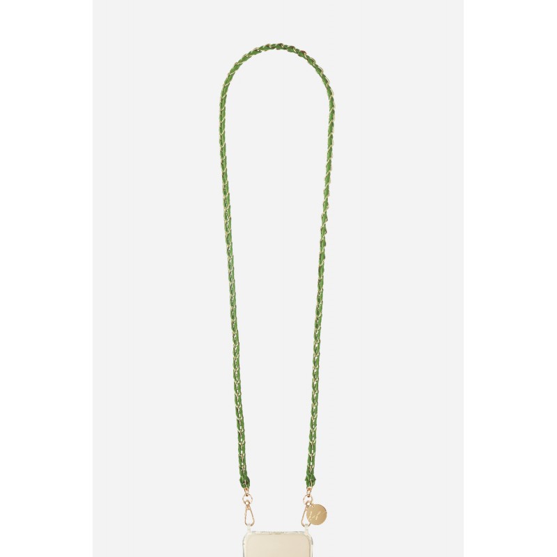 • Bijoux de téléphone Romy avec mousquetons dorés 40 cm cordon tressé vert avec chaîne en metal