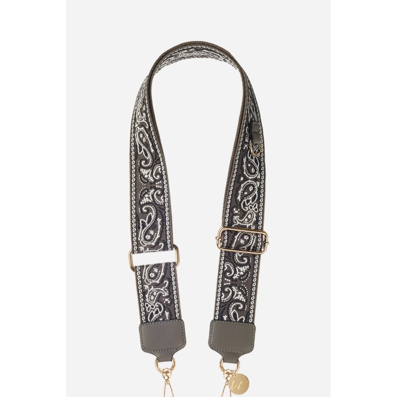 • Lanière sangle réglable Haby 120 cm motif bandana gris avec mousquetons dorés