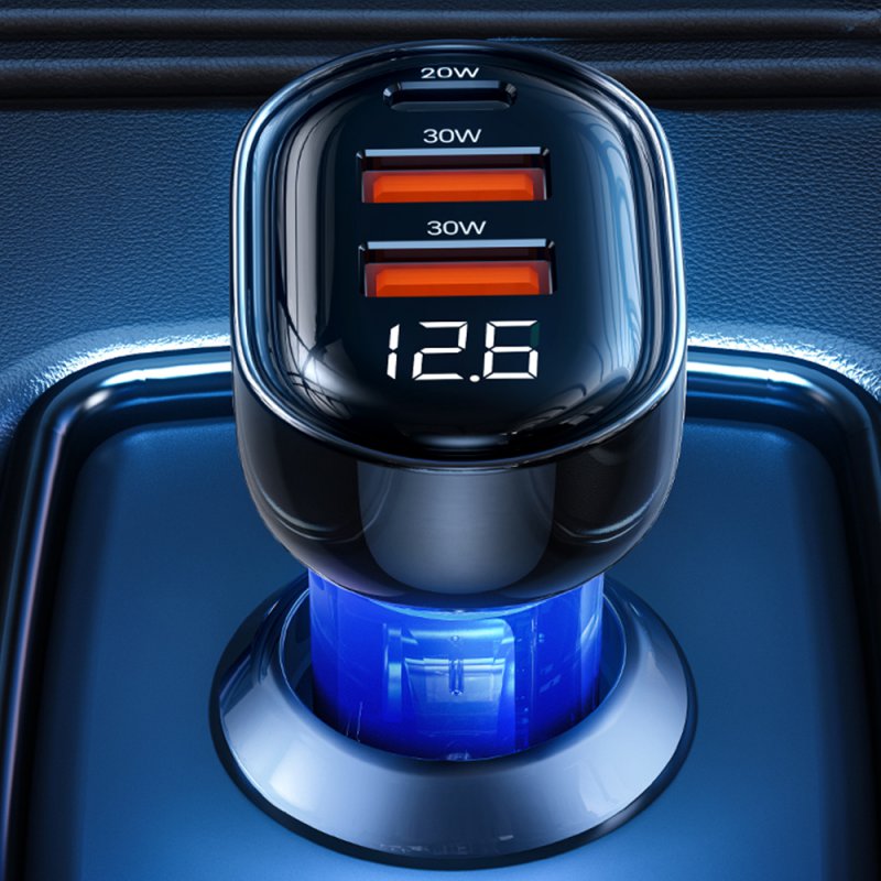 Chargeur de voiture rapide avec affichage numérique et 3 ports USB 30w + USB 30W + USB C 20W - noir transparent