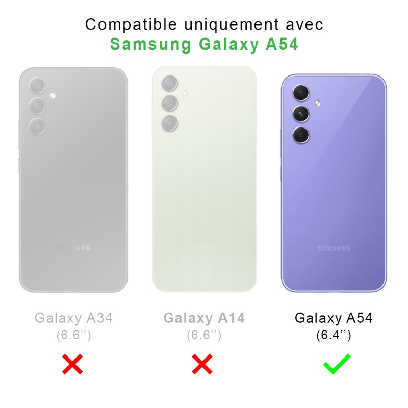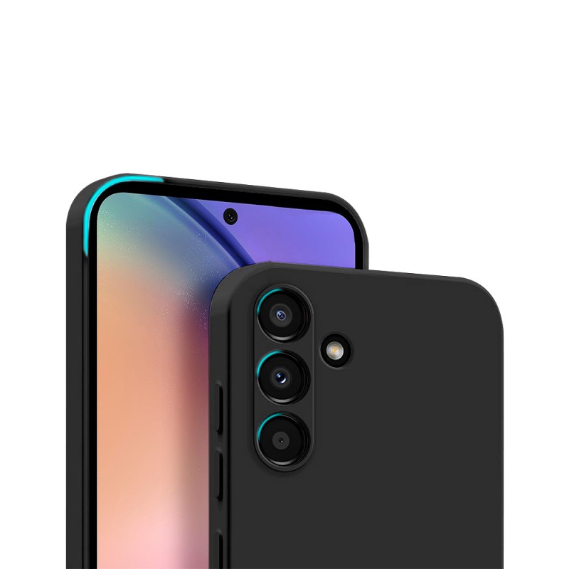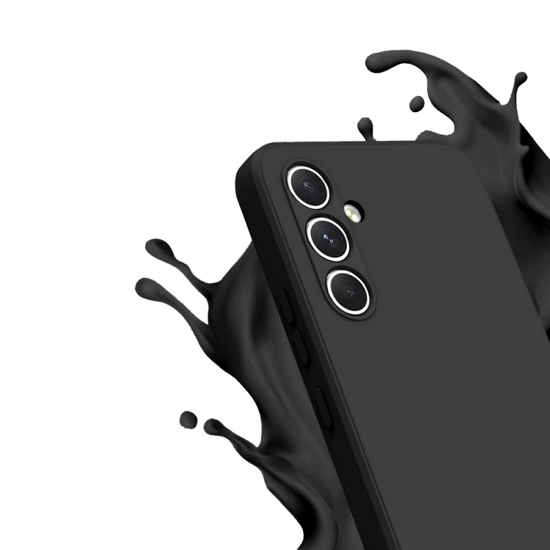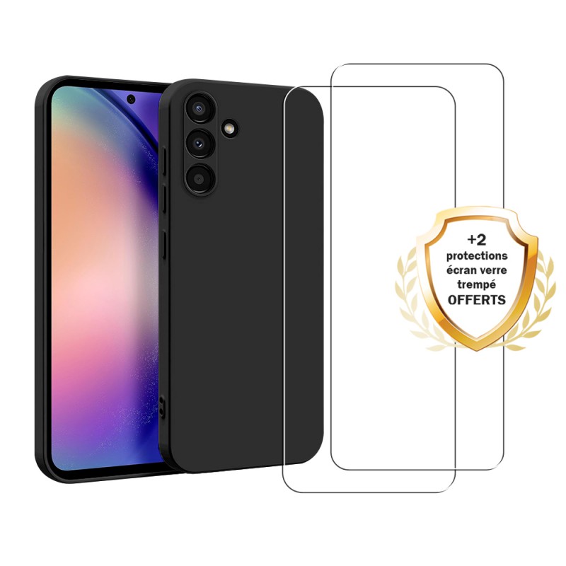 Pack coque silicone liquide noire + 2 verres trempés compatible Galaxy A54 offrant une protection intégrale contre les chocs, les rayures et la poussière. Les fonctionnalités tactiles de l'écran sont préservées.