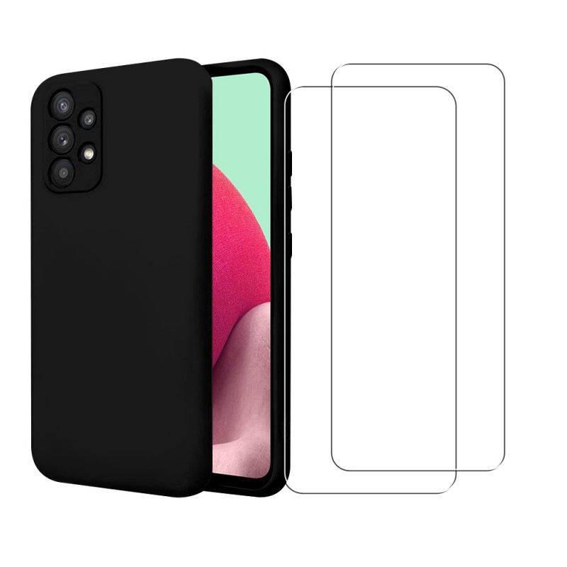 • > High Tech>Coque + 2 Vitres Offertes >Coque Samsung Galaxy A32 5G Silicone liquide Noire + 2 Vitres en Verre trempé Protection écran Antichocs
