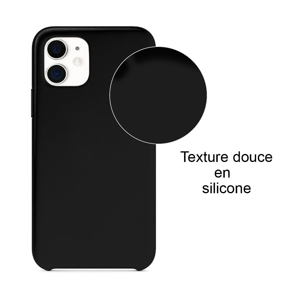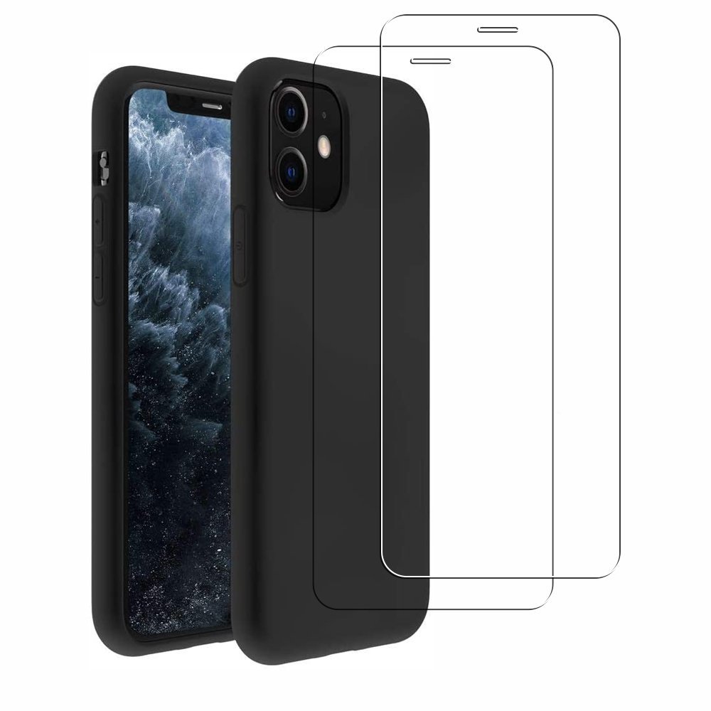 • > Coques > Coque iPhone 11 Silicone liquide Noire + 2 Vitres en Verre trempé Protection écran Antichocs