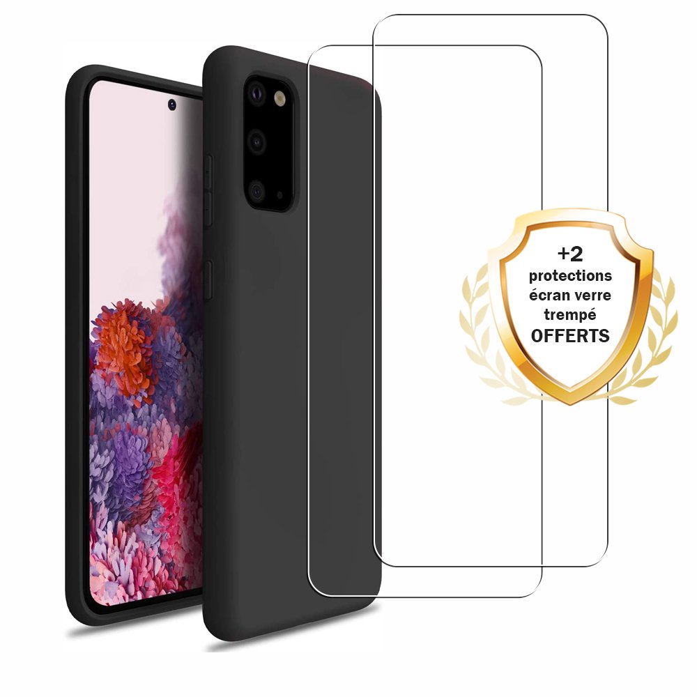 Coque Samsung Galaxy S20 FE Noire Silicone liquide+ 2 Vitres en Verre trempé Protection écran Antichocs