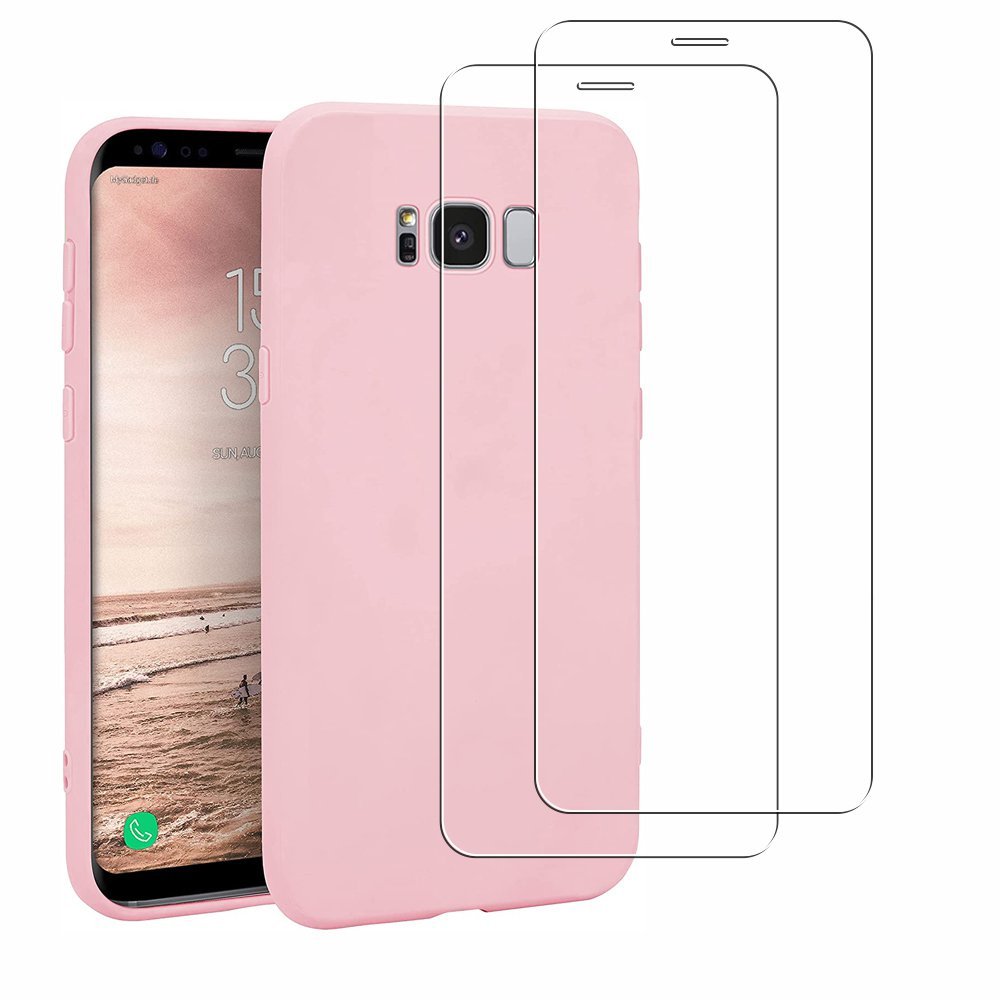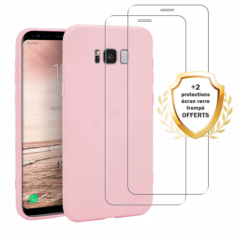 • Coque Samsung Galaxy S8 Silicone liquide Rose + 2 Vitres en Verre trempé Protection écran Antichocs