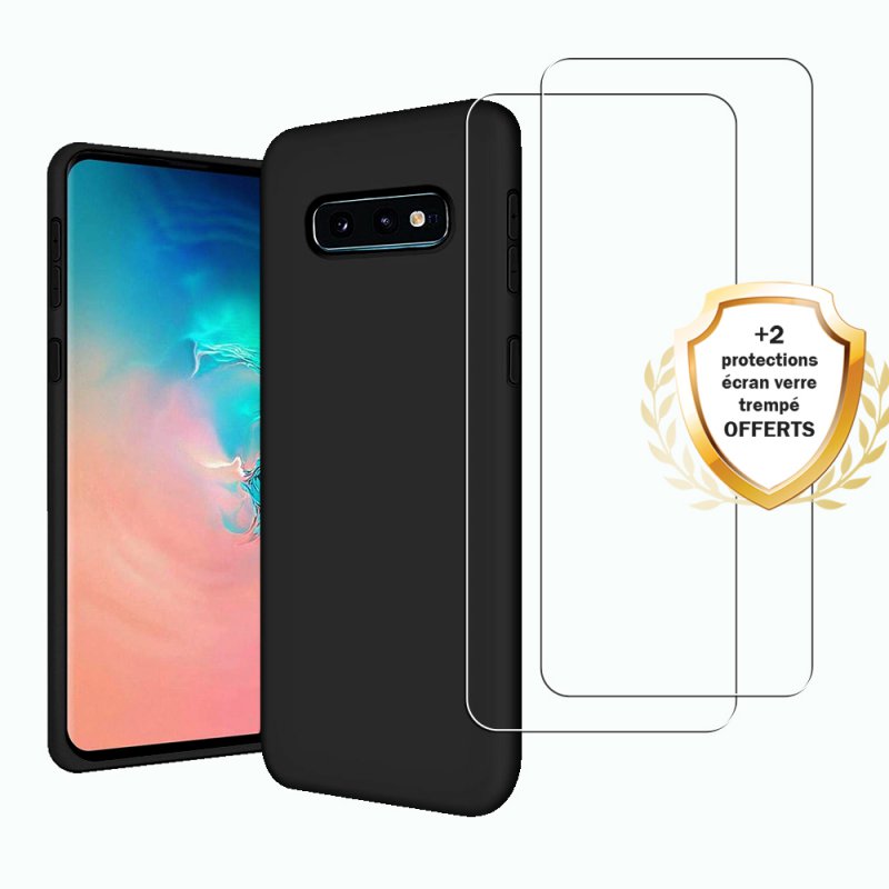 • > Coques >Coque Samsung Galaxy S10e Silicone Liquide Noire + 2 Vitres en Verre Trempé Protection écran