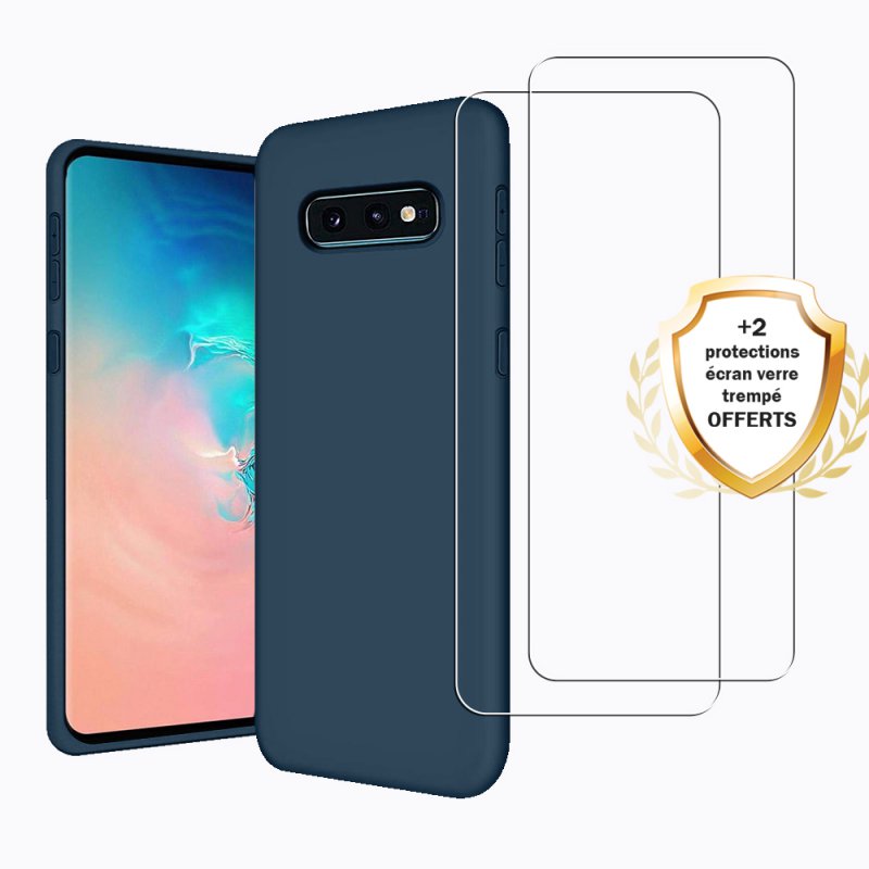 • > Coques >Coque Samsung Galaxy S10e Silicone Liquide Bleue + 2 Vitres en Verre Trempé Protection écran