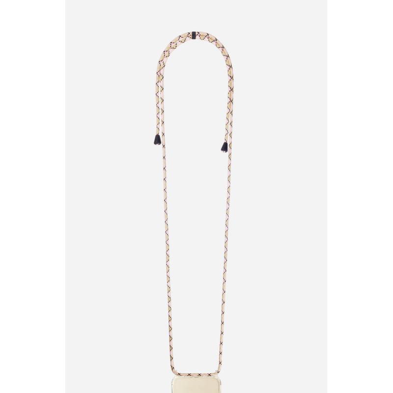 • > High Tech>Gadgets>Cordons>Lanière cordon Lilou en coton tressée avec embout en métal noir mat, coloris jacquard rose/beige