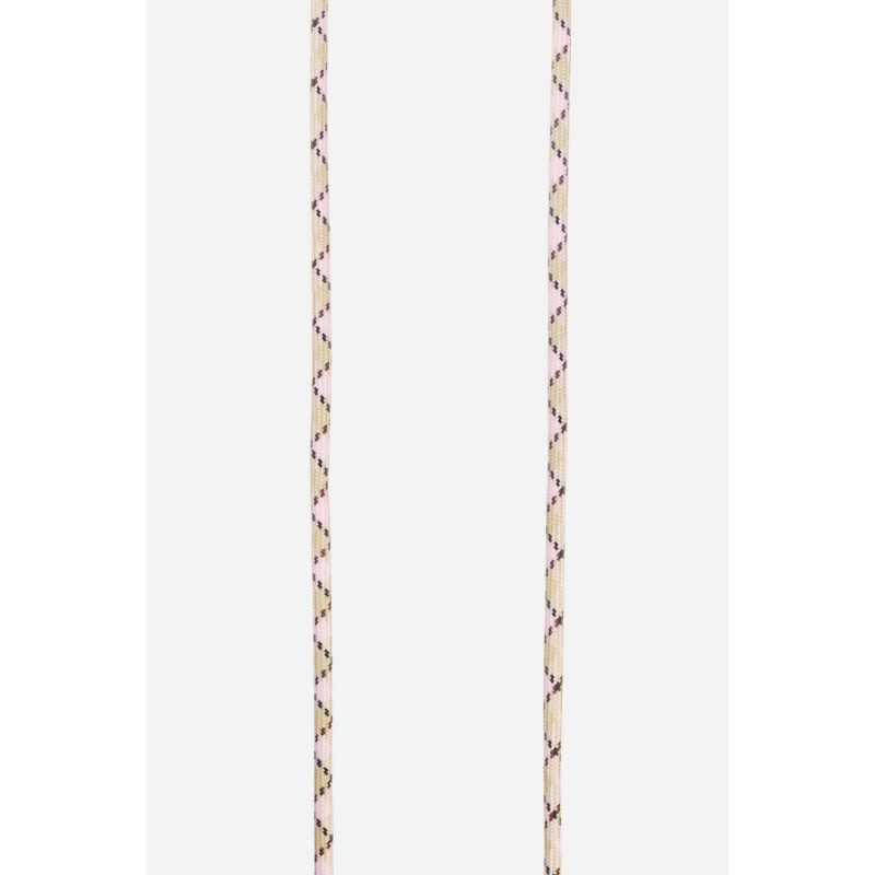 Lanière cordon en coton tressée avec embout en métal noir mat, coloris jacquard rose/beige