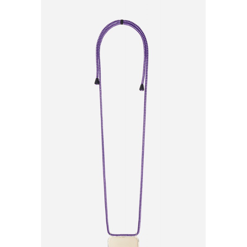 • > High Tech>Gadgets>Cordons>Lanière cordon Lilou en coton tressée avec embout en métal noir mat, coloris noir/ violet/parme
