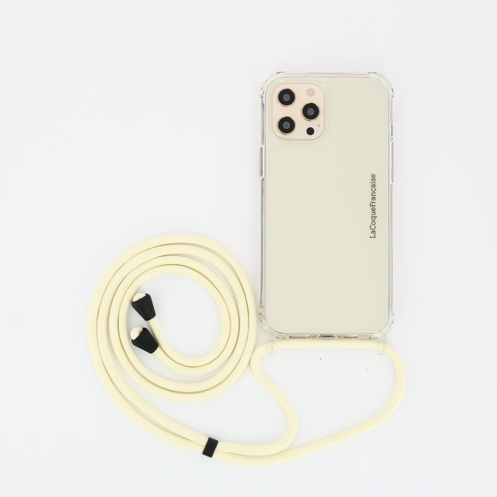 • > High Tech>Gadgets>Cordons>Lanière cordon Nina en coton tressée avec embout en métal noir mat, coloris ivoire