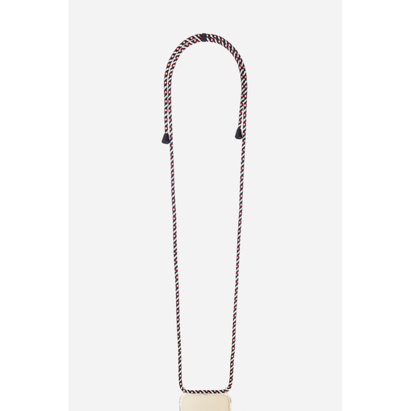 • > High Tech>Gadgets>Cordons>Lanière cordon Lilou en coton tressée avec embout en métal noir mat, coloris bleu/blanc/rouge