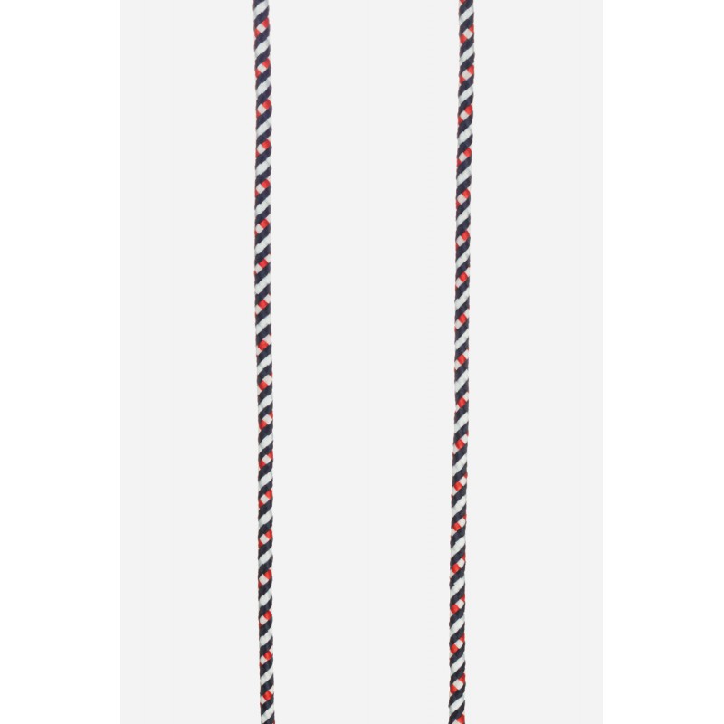 • Lanière cordon Lilou en coton tressée avec embout en métal noir mat, coloris bleu/blanc/rouge