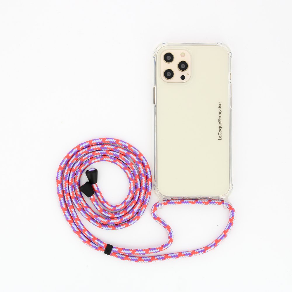 • > High Tech>Gadgets>Cordons>Lanière cordon Lilou en coton tressée avec embout en métal noir mat, coloris orange, violet et gris