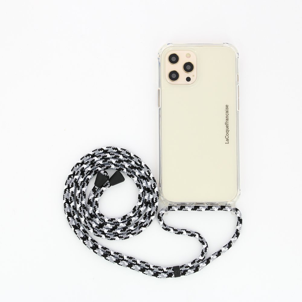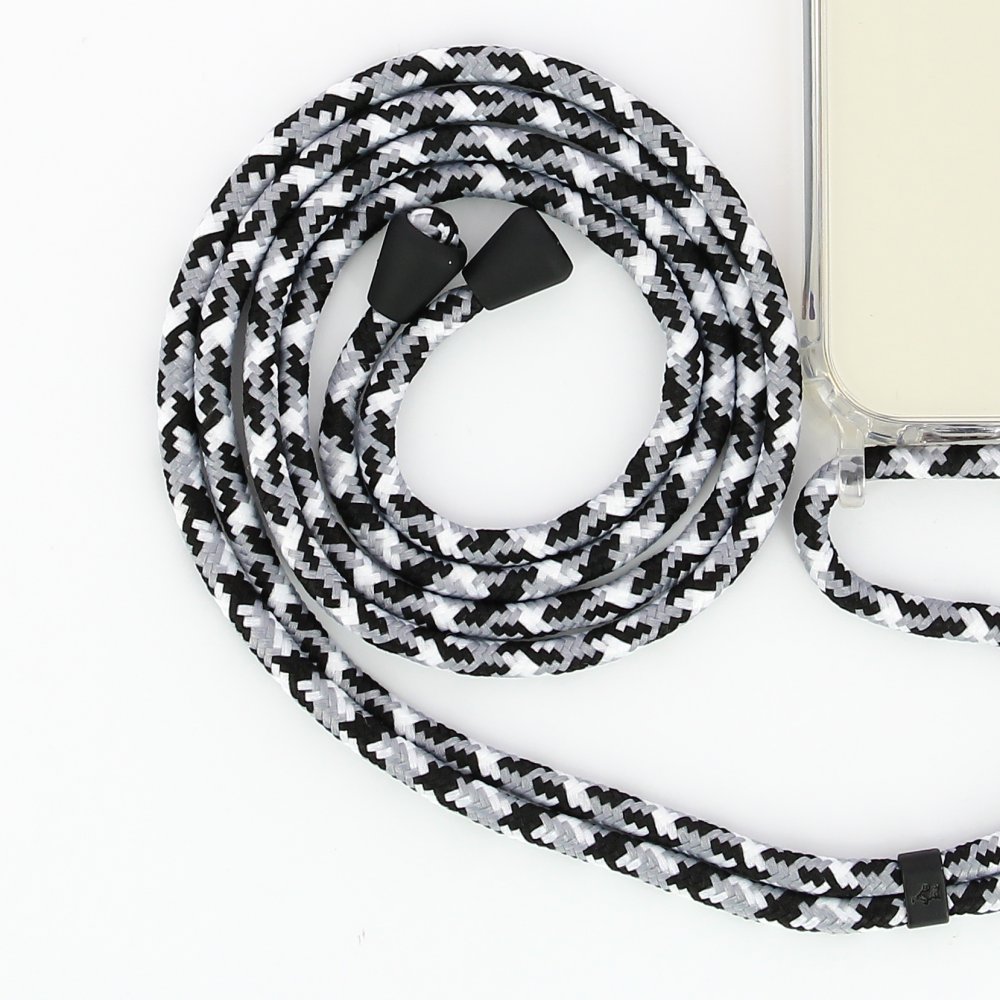 • > High Tech>Gadgets>Cordons>Lanière cordon Lilou en coton tressée avec embout en métal noir mat, coloris noir, gris et blanc