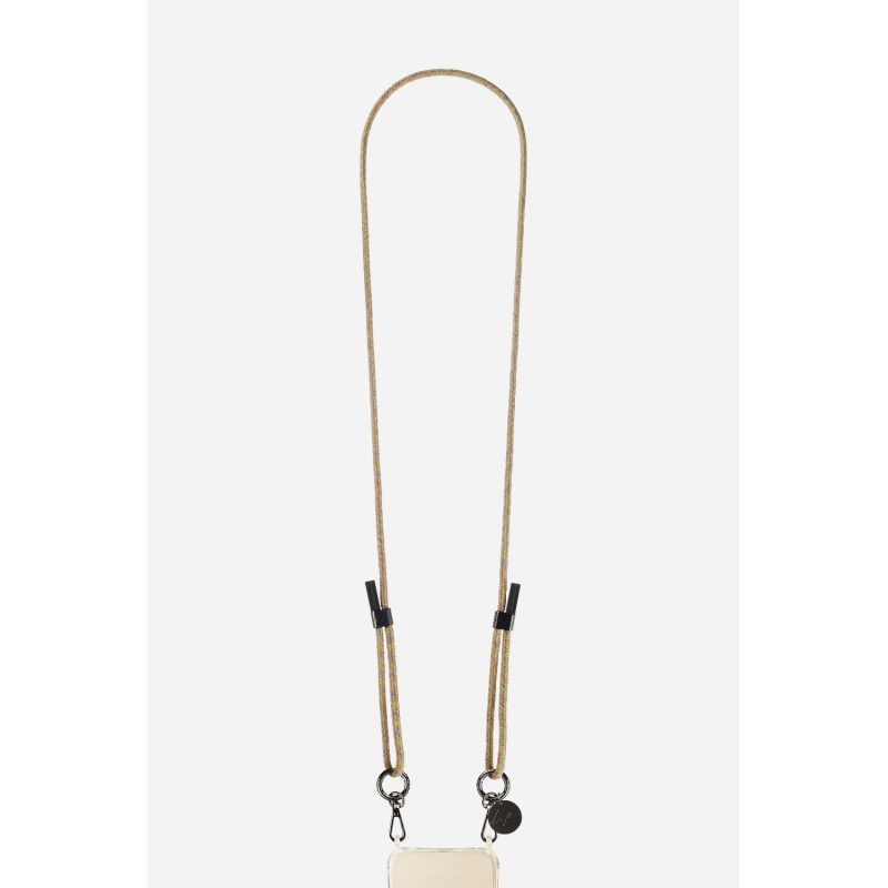 Lanière cordon Liam en coton tressée avec mousquetons noir metallisé, coloris multi colors