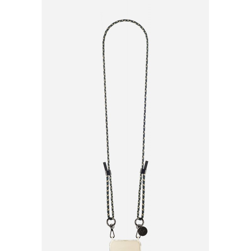 • > High Tech>Gadgets>Cordons>Lanière cordon Liam en coton tressée avec mousquetons noir metallisé, coloris noir, vert et beige