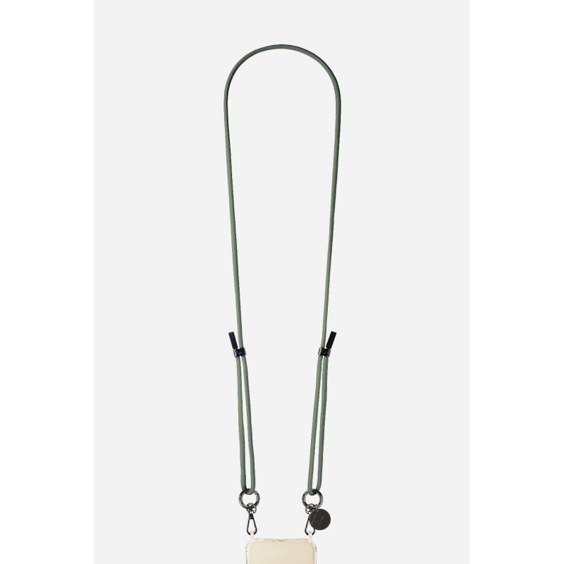 Lanière cordon Nae en coton tressée avec mousquetons noir metallisé, coloris kaki