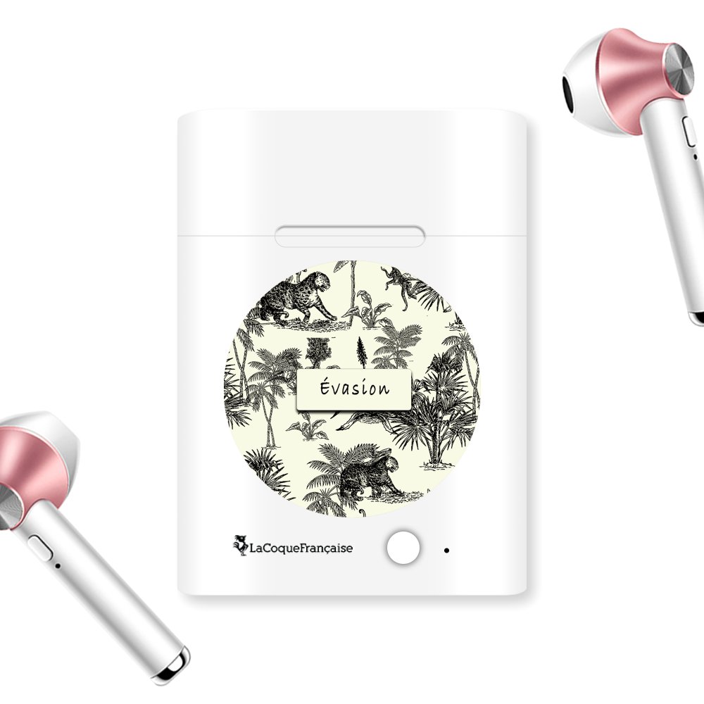 • Ecouteurs Sans Fil Bluetooth Noir blanc Léopard Indien Ecriture Tendance et Design Evetane.