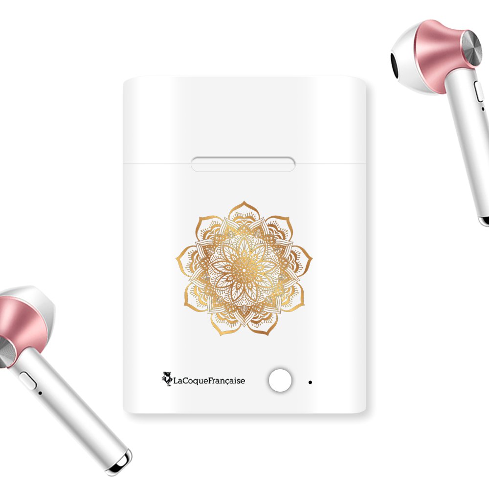 Ecouteurs Sans Fil Bluetooth Rose Gold Mandala Or Ecriture Tendance et Design La Coque Francaise