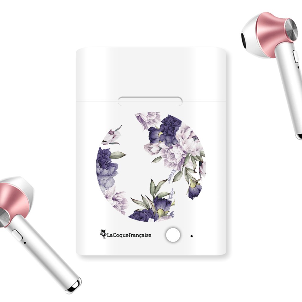 Ecouteurs Sans Fil Bluetooth Rose Gold Pivoines Violettes Ecriture Tendance et Design La Coque Francaise