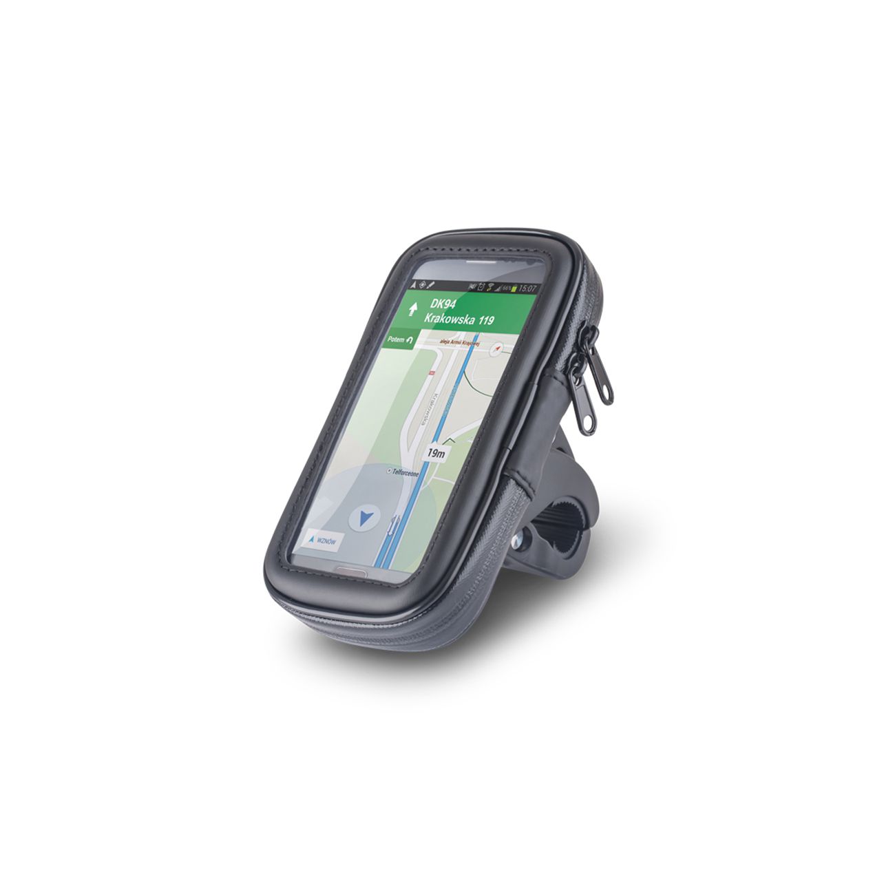 Support vélo pour téléphone 55 - Ex iPhone 6+/7+/8+.Le porte-vélo avec housse imperméable sur le téléphone est l'accessoire parfait, qui vous permet d'avoir un téléphone à portée de main lors de chaque tour à vélo. Feuille conductrice vous permet d'utiliser le téléphone sans le retirer de l'affaire. La poche est hermétiquement fermée et étanche, ce qui permet de protéger efficacement le téléphone même dans les conditions les plus difficiles. Le support est fixé au cadre de la bicyclette à l'aide d'un support solide qui retient solidement le produit pendant la conduite. Case en taille L, compatible avec les téléphones 5.5 ''.Dans l'ensemble : Support pour guidon de véloInformations supplémentaires : Etanche