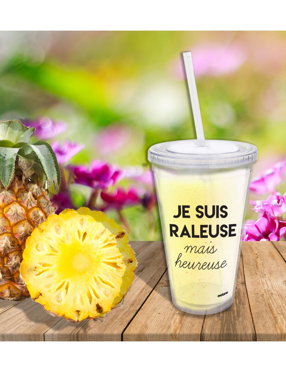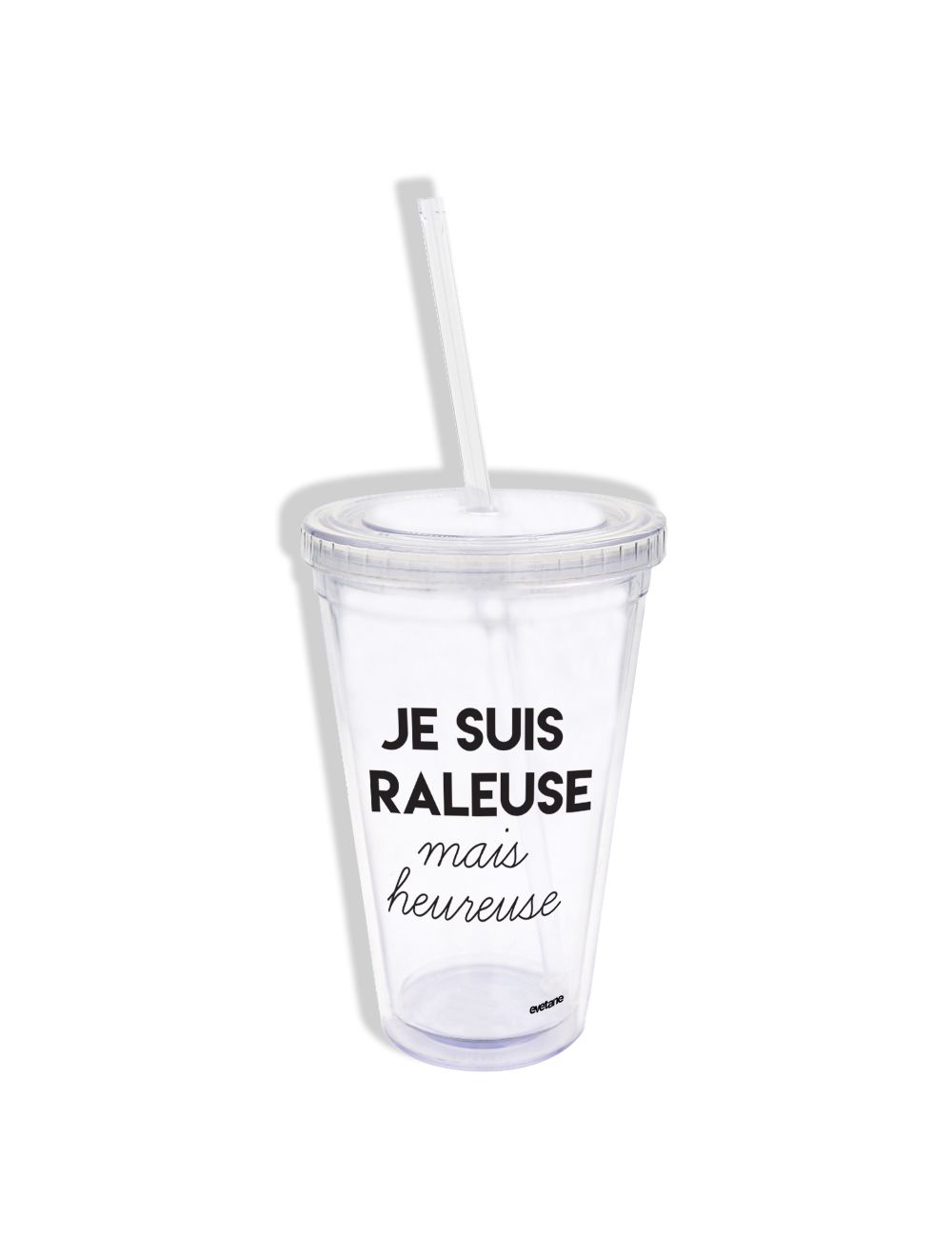 • Mug transparent avec paille en plastique Raleuse Mais Heureuse