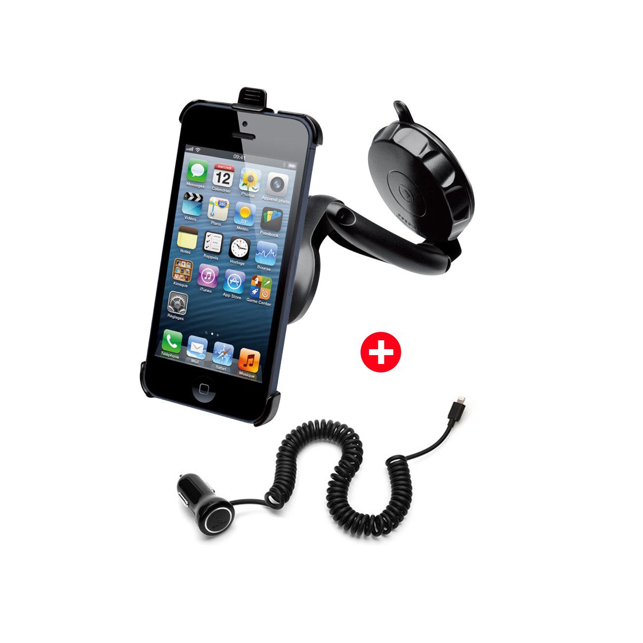 Empressez vous de saisir ce pack, support voiture + chargeur allume cigare, spécialement conçu pour votre iPhone 5/5S/SE.