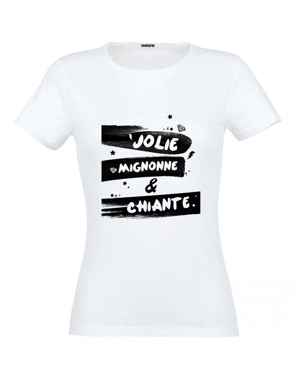 Si toi aussi tu es jolie, mignonne et chiante, alors ce design est fait pour toi. En effet, il regroupe les 3 caractéristiques avec des petits symboles autour des traces noires, qui elles font ressortir l'écriture.